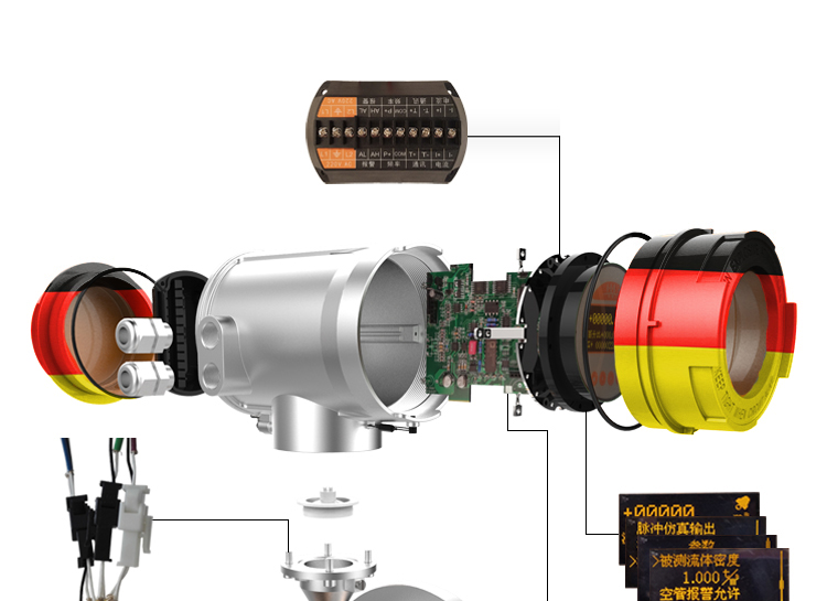 6.勵磁線及電極線均采用優(yōu)質(zhì)的單芯屏蔽線,可降低干擾,提高信號的潔凈度,從而提高測量精度。