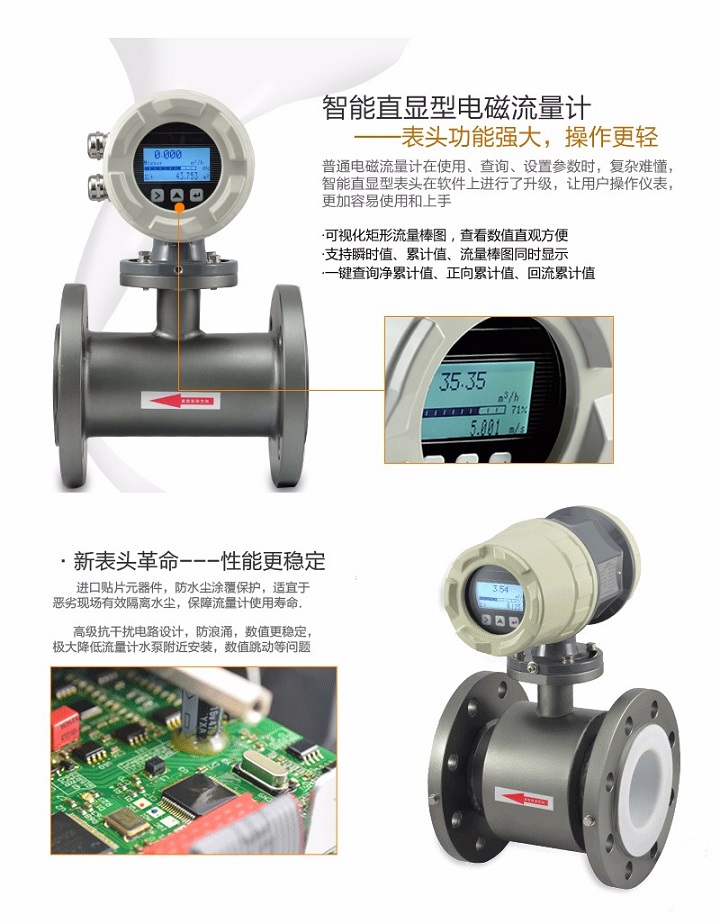 進(jìn)口分體式電磁流量計中的轉(zhuǎn)換器可與傳感器組成一體型或分離型,一體式是為一體式電磁流量計,分體式成為分體式電磁流量計,流量計為雙向測量系統(tǒng),內(nèi)裝三個積算器:正向總量、反向總量及差值總量;可顯示.莊、反流量,并具有多種輸出:電流、脈沖、數(shù)字通訊、HART,以分體式電磁流量計為例介紹其在安裝時應(yīng)注意哪些問題: