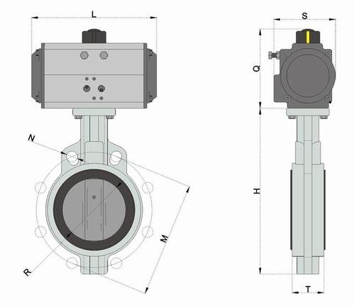 進口氣動對夾式襯膠蝶閥通過氣動執(zhí)行機構(gòu)驅(qū)動蝶板旋轉(zhuǎn),實現(xiàn)流體的快速啟閉與流量調(diào)節(jié)27。其采用對夾式連接設(shè)計,無需額外法蘭,顯著節(jié)省安裝空間,尤其適用于緊湊型管道系統(tǒng)(如船舶、化工裝置)56。閥體內(nèi)壁及蝶板表面襯覆橡膠材料(如NBR、EPDM、FKM),兼具耐腐蝕性與密封性能,可適配腐蝕性介質(zhì)及衛(wèi)生要求較高的場景
