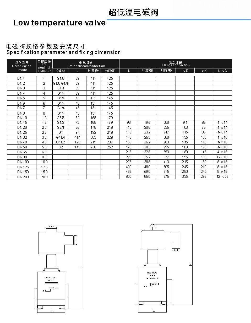 進(jìn)口超低溫電磁閥主要技術(shù)參數(shù):